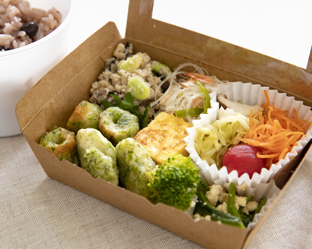 毎日の食卓によく登場するおかずも多く、日常の延長上にこのおべんとうがあるといいなという想いで作っています。また、小麦粉(グルテン)をなるべく控えたおべんとうにしているので、おなか一杯食べてもすーっと消化してくれるからどうぞおなかいっぱい食べてください。